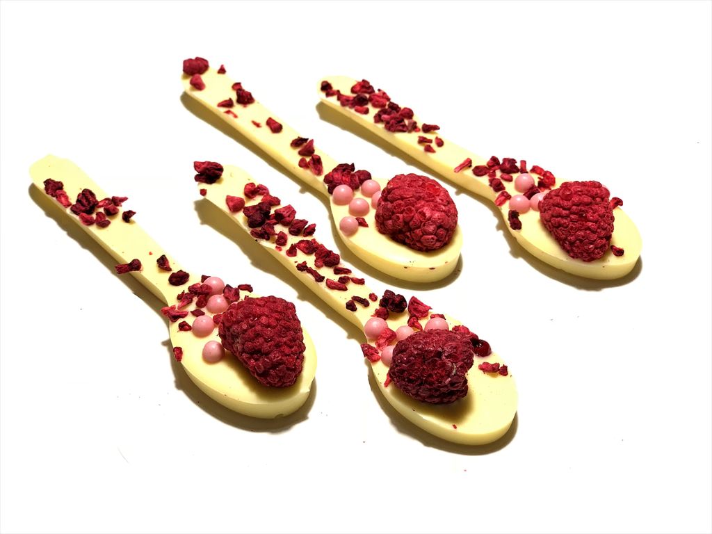 Шоколадная ложка 17гр. Белый шоколад. 37.511. Малина; клубничные криспы. «Шоколадная ложка» – это съедобная ложка, сделанная из бельгийского шоколада с добавлением сублимированных ягод, орехов и пряностей. В нашем ассортименте более 30 видов таких «чудо-ложечек» на любой вкус. «Шоколадные ложечки» станут замечательным подарком не только для сладкоежек, но и для тех, кто любит всё, что выходит за рамки стандартов.