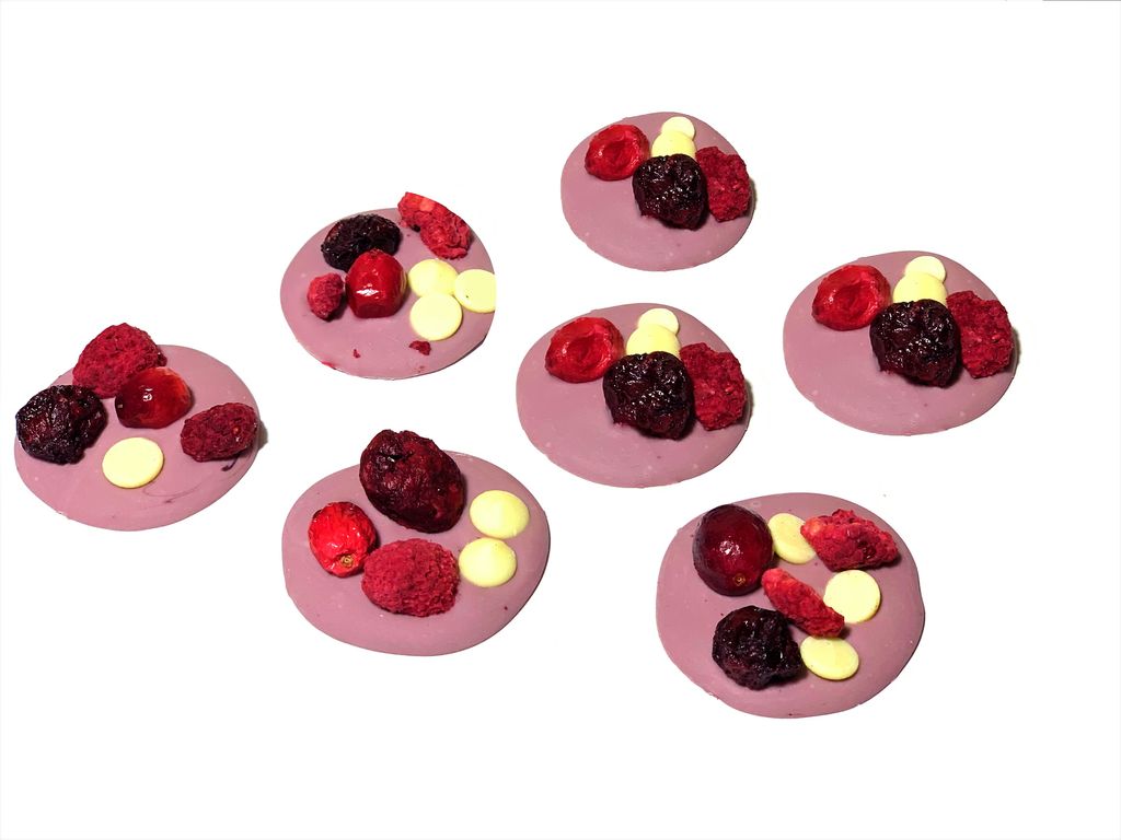 Шоколадные медианты 12гр. Фиолетовый шоколад. 37.695. Малина; ежевика; черная смородина; белый шоколад; вишня.