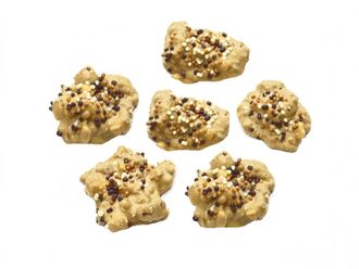 Шоколадное драже – это ягоды, индивидуально покрытые бельгийским шоколадом и обсыпанные тёртой ягодой, орехами или хрустящими криспами. В нашей коллекции более 35 видов драже с различными начинками. Драже продаются как в индивидуальной упаковке, так и на развес. Наше драже покупают не только для себя, но и для подарка близким. Также их заказывают для оформления разных торжеств: корпоративных вечеринок, фуршета, свадьбы, юбилея, корпоративных выездов, презентаций. Особой популярностью пользуются "ягодное" драже в белом шоколаде. Хрустящая сублимированная ягода, покрытая тонким слоем белого шоколада и обсыпанная тертой малиной, так изумительна на вкус, что заставляет наших покупателей возвращаться за новыми порциями шоколадного лакомства.