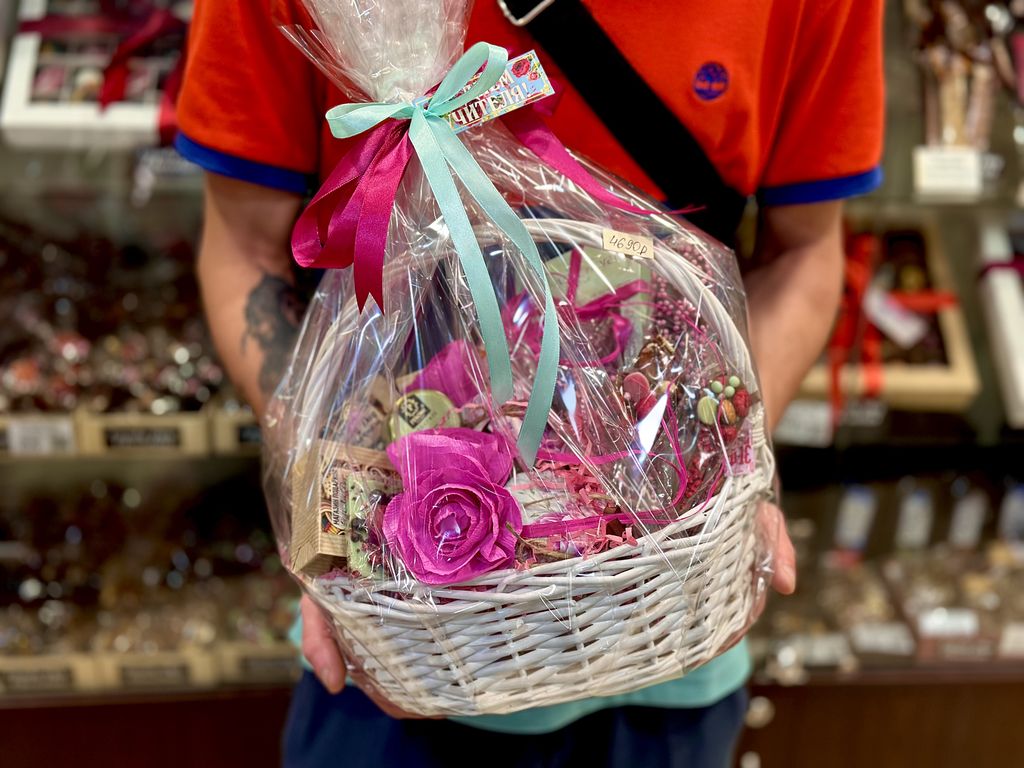 Состав подарка: Ароматный чай; Бельгийский шоколад; Кофе; Мёд-суфле; Джем; Сироп; Сладости.