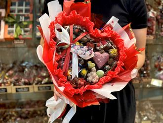 Тёмный, молочный, белый, клубничный, апельсиновый, лаймовый, ежевичный бельгийский шоколад Barry Callebaut; какао-масло, какао тертое, эмульгатор натуральный - соевый лецитин, натуральная ваниль, пищевой краситель. Начинка: солёная карамель, шоколадный трюфель, лесной орех, сливочная, орехи, хрустящая ягода.